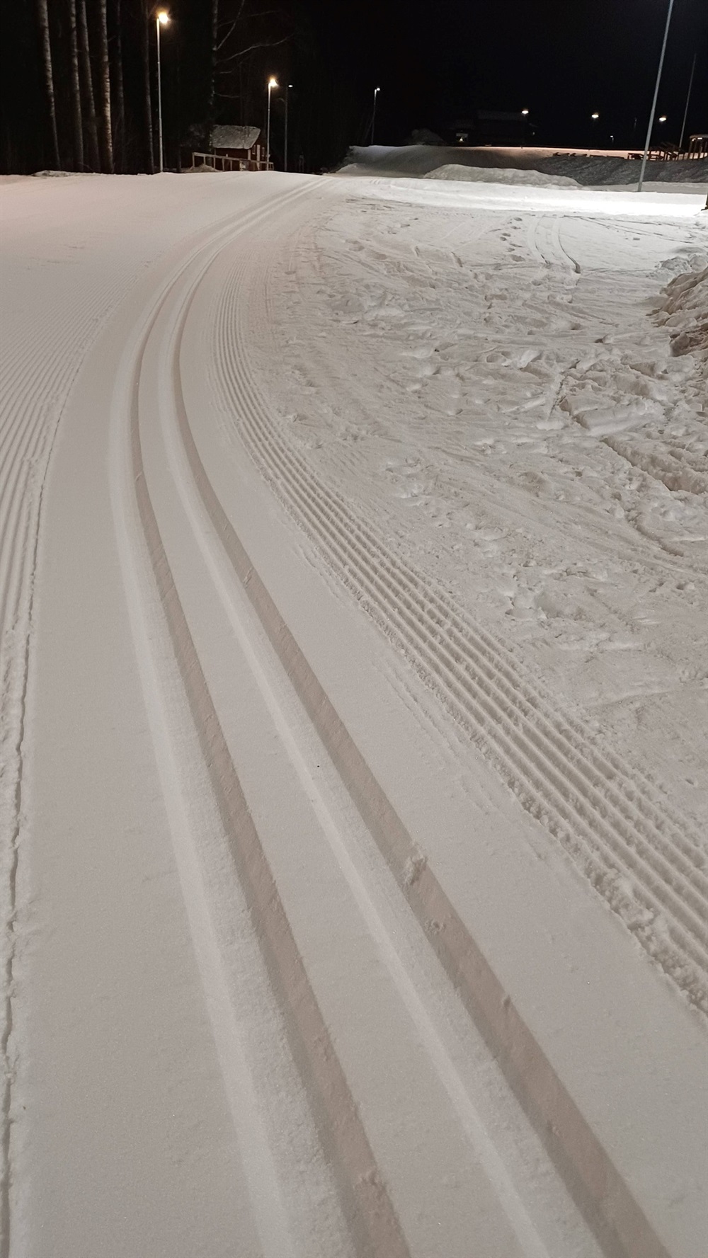 Konstsnöspåret (ca 1km) nypreparerat med pistmaskin för skate och klassiskt tisdag morgon. Fina förhållanden.